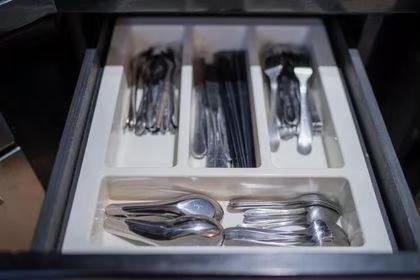 อุปกรณ์ครัวมี ครกสาก มีดเขียง จานชาม ช้อนส้อม หม้อ กะทะ แก้ว