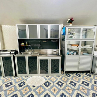 อุปกรณ์ครัวครบครัน หม้อ กระทะ จานชาม ช้อน แก้วน้ำ เขียง มีด หม้อหุงข้าว ครก เครื่องปั่น ไมโครเวฟ เตาปิ้งขนมปัง ซึ้ง ถังน้ำแข็ง เตาปิ้งย่าง เตาแก๊ส