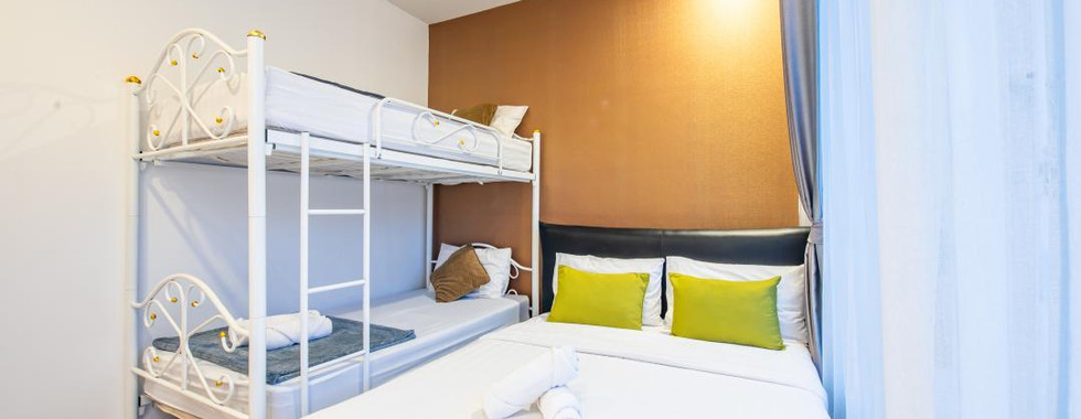 ห้องนอนที่ 3 : เตียงใหญ่ 5 ฟุต 1 เตียง 3.5 ฟุต2 เตียง เสริม 3.5 ฟุต 2 เตียงห้องน้ำรวม 1 ห้อง