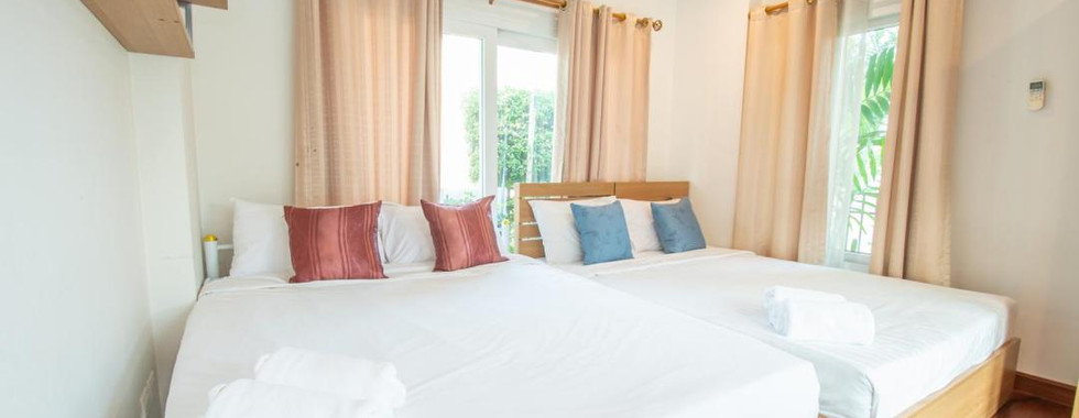 ห้องนอนที่ 2 มีเตียง 5 ฟุต 2 เตียงห้องนอนที่ 1 กับ ห้องนอนที่ 2 ใช้ห้องน้ำร่วมกัน