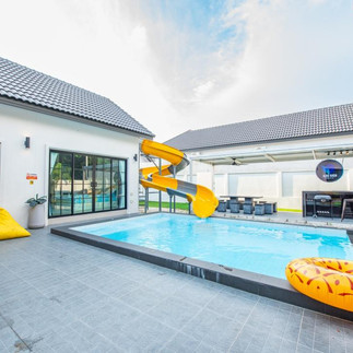 -สไลด์เดอร์ 16 เมตร -แอร์ทุกห้อง-มีเสื้อชูชีพเด็ก - มีถังน้ำแข็งขนาด 30 ลิตร - ทีวีเป็น smart tv ขนาด 65 นิ้ว มี 1 เครื่อง ห้องโถงค่ะ - คาราโอเกะเป็นแบบ You tube - เครื่องทำน้ำอุ่นมีทุกห้อง -มีไดร์เป่าผม 1 เครื่อง - ครีมอาบน้ำ มีทุกห้องมีทิชชู่ ถุงขยะใช้เสียงดังด้านนอกได้ไม่เกิน 22.00 น. ภายในบ้านปิดประตูได้ตลอดทั้งคืน