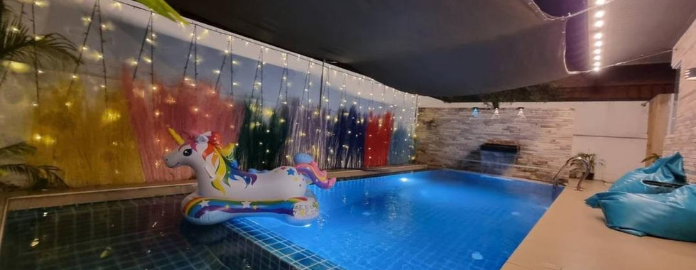 ขนาดสระ. ยาว 7 เมตร. กว้าง. 3 เมตร ลึก 120 เซนติเมตรสระเด็ก ลึก. 70. เซนติเมตร.