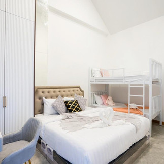 -ห้องนอนที่ 3 มีเตียง 6 ฟุต 1 เตียง และ เตียง 2 ชั้น 3.5 ฟุต 1 เตียง มีห้องน้ำในตัวชั้นบน