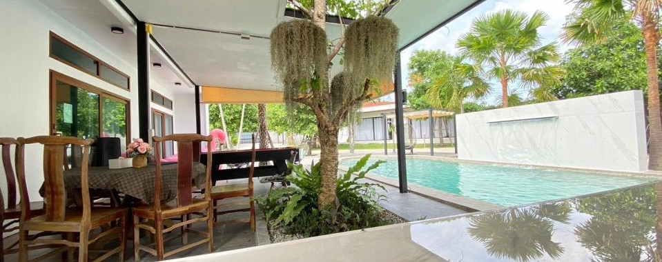 บ้านพักพูลวิลล่า สไตล์รีสอร์ทหมู่บ้านเล็กๆ สระว่ายน้ำส่วนตัวเป็นของผู้เช่ารายวันบริเวณกว้างขวาง ภายในบ้าน มีบ้านอีก3หลัง (มีผู้เช่าใช้ถนนทางร่วม เท่านั้นเเค่ขับผ่าน) -ในรั้วบ้าน จะมีบ้านของเจ้าของบ้านอยู่ด้วย ซึ่งจะไม่ได้ยุ่งเกี่ยวกับบ้านที่ลูกค้าเข้าพักครับ