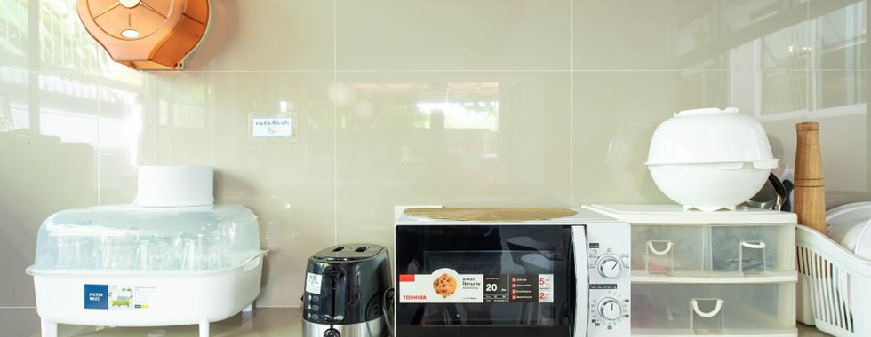 "หม้อ กระทะ จานชาม ช้อน แก้วน้ำ เขียง มีด หม้อหุงข้าว ครกเครื่องปั่น ไมโครเวฟ เตาปิ้งขนมปัง ซึ้ง ถังน้ำแข็ง"