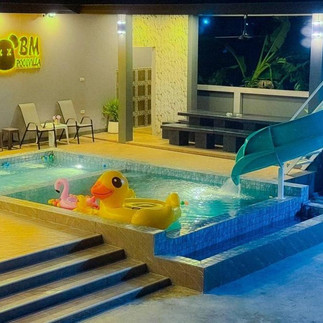 ขนาดสระ 4x6 เมตร ความลึกสระเด็ก 70 เซนติเมตร สระผู้ใหญ่ 140 เซนติเมตร