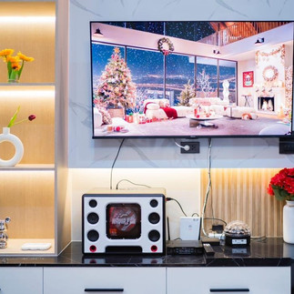 ห้องครัวพร้อมอุปกรณ์ครัวครบครันถ้วย จาน ชาม แก้วถังน้ำแข็งเตาปิ้งย่าง บาร์บีคิว