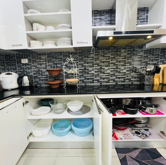 หม้อ กระทะ จานชาม ช้อน แก้วน้ำ เขียง มีด หม้อหุงข้าว ครก เครื่องปั่น ไมโครเวฟ เตาปิ้งขนมปัง ซึ้ง ถังน้ำแข็ง เตาปิ้งย่าง เตาแก๊สอุปกรณ์เครื่องครัวมีครบ (ยกเว้นเครื่องปรุงลูกค้าต้องเตรียมมาเอง)ถังน้ำแข็ง 100 ลิตร