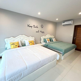 ห้องนอนที่ 1 เตียง 6ฟุต +เตียง 6ฟุต ห้องน้ำในตัวห้องนอนที่ 2 เตียง 5ฟุต + เตียง 3.5 ฟุต ห้องน้ำในตัว( เสริม ที่นอนปิกนิก)