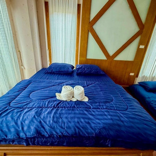ห้อง1 มีเตียง 6 ฟุต 1 เตียง และเตียง 3.5 ฟุต 1 เตียง มีห้องน้ำในตัวห้อง2 มีเตียง 6 ฟุต. 1 เตียง และเตียง3.5ฟุต 2 เตียง(ไม่มีห้องน้ำ)